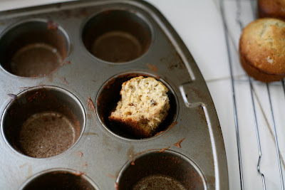 If you read this little blog you would probably think that I only eat bananas and baked goods. I eat other things too, I swear. But when Gold, I mean ripely brown bananas protruding with sweetness magically appear on my door step, I can't let them go un-baked. (Thanks Brynn) I make several Banana Bread recipes all with a slight variation either with chocolate chips, crystallized ginger or whole wheat flour. But this time I decided to go with a classic James Beard Banana Bread Recipe. It has the least amount of ingredients and least fuss of them all. It is a little bit lighter and less sweet which is perfect for breakfast. I don't like eating sweets in the morning when I wake up. They leave my stomach a little unsettled all day.